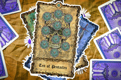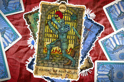 4 пентаклей в Таро олицетворяет темы материализма, собственничества и потребности в безопасности, а ее перевернутое положение говорит о страхе перемен или нежелании избавиться от привязанностей.