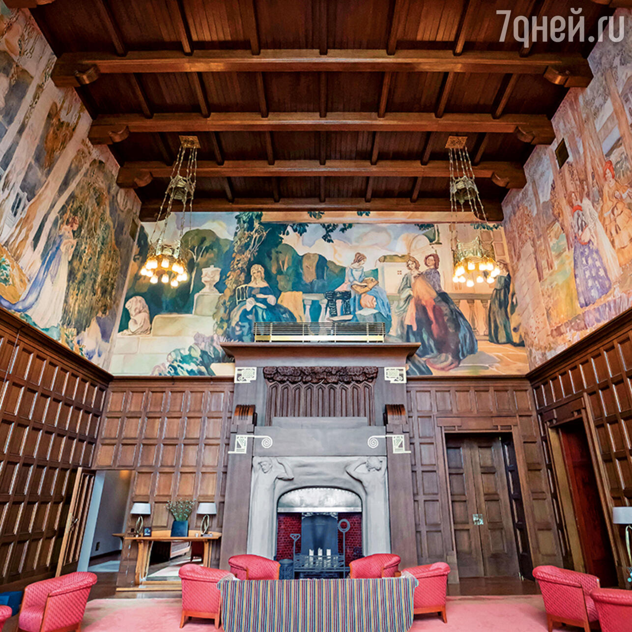 ...Мусатовские девушки, как и задумывал Шехтель, все-таки появились на стенах особняка Дерожинской — нынешней резиденции посла Австралии в России. В 2009—2013 годах в здании проводили реставрацию и решили воссоздать фрески по оригинальным эскизам художника, хранившимся в архивах Третьяковской галереи. С помощью цифровых технологий панно перевели на специальные обои и наклеили на стены. Гигантский холл наконец обрел свою завершенность, и стало казаться, что зыбкие женские фигуры на аллеях старинных парков были здесь всегда...
