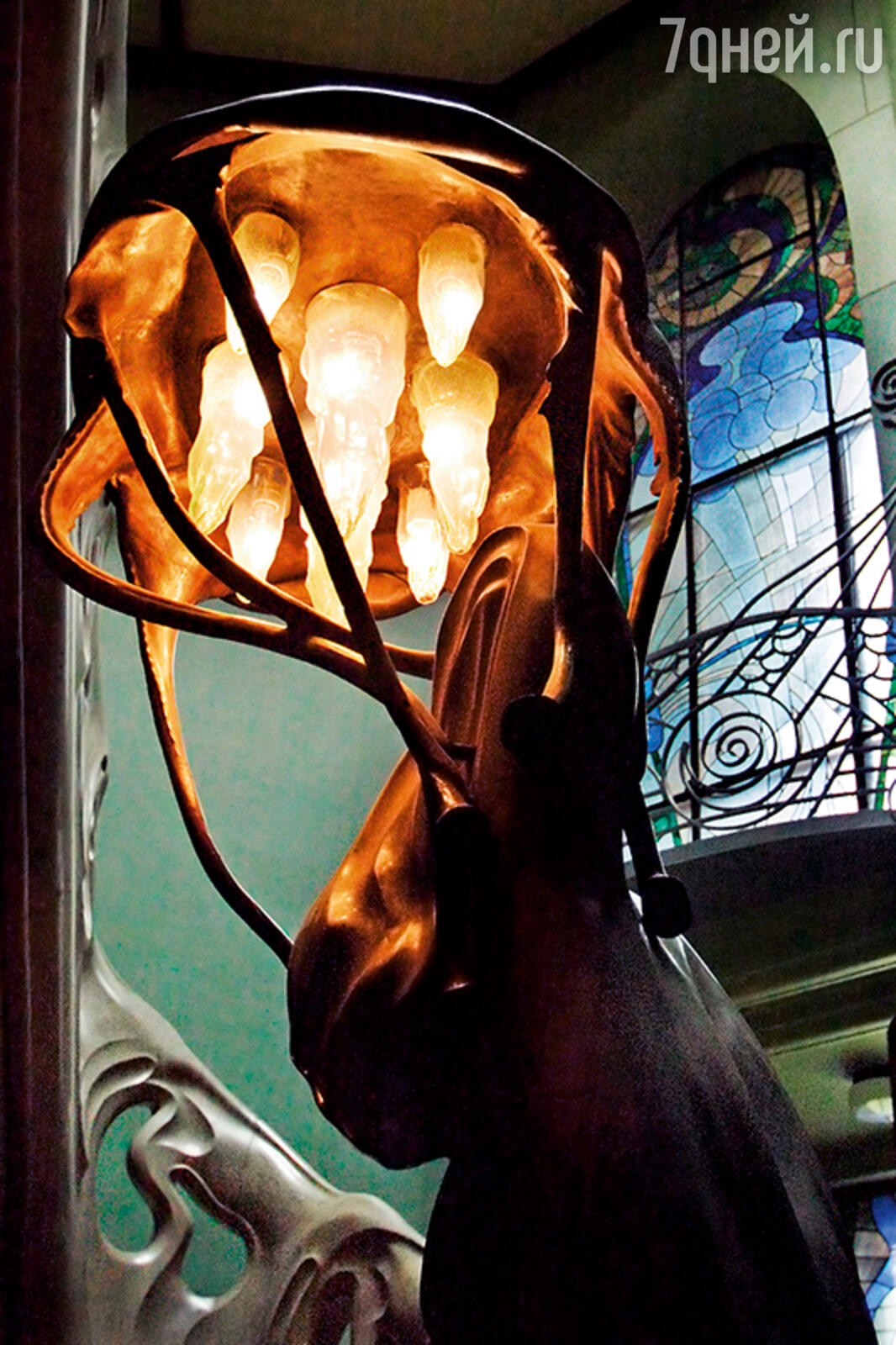 В холле особняка он создал иллюзию подводного мира с мраморной лестницей в виде взметнувшейся и опадающей волны, в которой «выплеснулся весь модерн», фонарем-медузой и дверными ручками в виде морских коньков. Даже в балконной решетке улавливался мотив рыбьей чешуи. В оформлении остальных помещений преобладали растительные мотивы: улитки и кисти сирени на потолке, извилистые оконные переплеты, напоминающие ветки деревьев, фигурки богомолов на витражах в прихожей и безвозвратно исчезнувшие при новой власти люстра в форме цветков подснежника, а также фриз из тюльпанов — символ счастья.