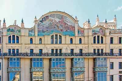 Летом 1900 года он начал строительство роскошного особняка для одного из восьми братьев Рябушинских — Степана Павловича. Молодой миллионер желал иметь дом по последней моде, но участок приобрел крайне неказистый: одной стороной выходящий на Спиридоновку, другой — на Малую Никитскую. Как раз на этом углу стояла покосившаяся бакалейная лавка, продать которую владелец ни за что не соглашался. Задача для архитектора оказалась непростой: на пятачке разместить не только сам дом, но и корпус для конюшни, прачечной, дворницкой и прислуги. Позднее Рябушинский завел для своих малолетних детей двух буренок, так что в служебных постройках расположился еще и коровник. И это в центре Москвы!