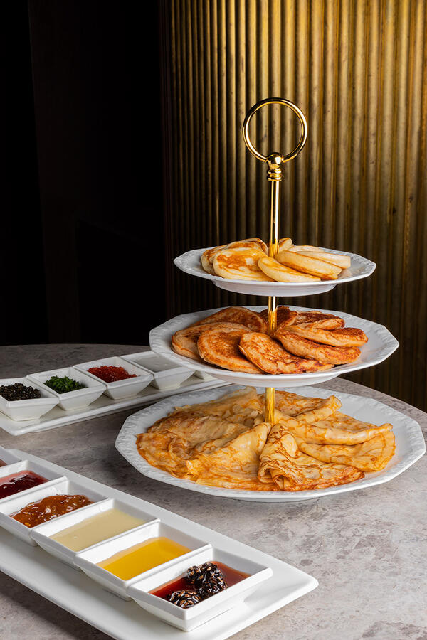 Гранд-лобби & бар «Шаляпин» в лучших традициях Масленицы предлагает разнообразное меню, которое пришлось бы ко столу на пиру в сказке «Царевна-лягушка».