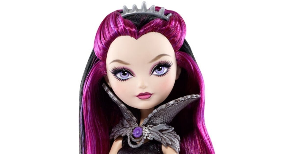 Кукла Рейвен Квин. По легенде эта героиня – дочь Малефисенты, она обучается в Ever After High – это школа, в которой получают образование дети известных сказочных персонажей. Здесь их учат следовать жизненному опыту своих родителей и повторять их сказочную судьбу. Среди учеников и дочь Белоснежки, и дочь Спящей Красавицы, дочь Злой королевы, сын Охотника и многие другие.