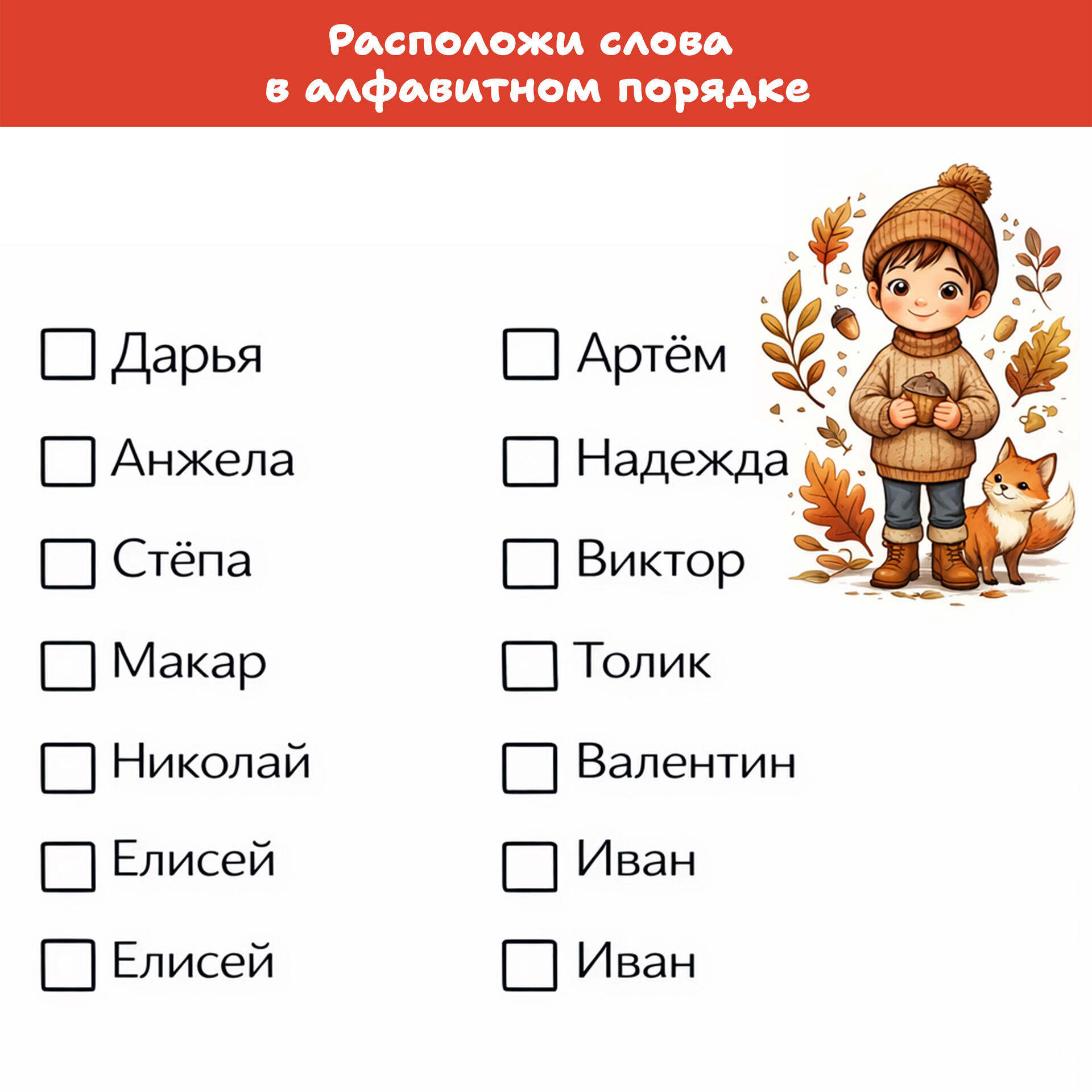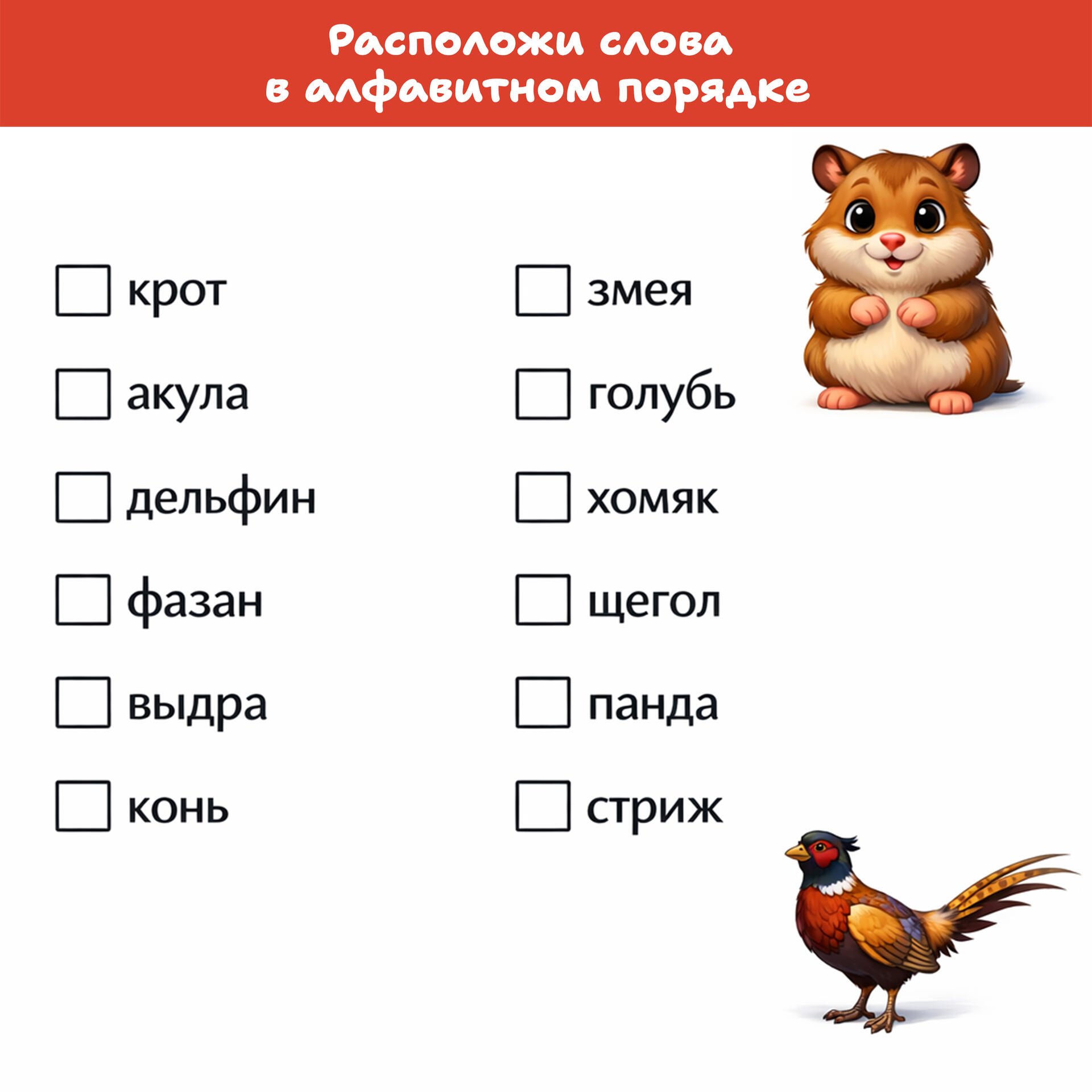 И здесь на помощь приходит простая, почти настольная игра — «Расположи слова в алфавитном порядке». Она не требует специальной подготовки, а эффект дает ощутимый: развивает фонематический слух, тренирует внимание и автоматизирует навык, который пригодится на всю жизнь.