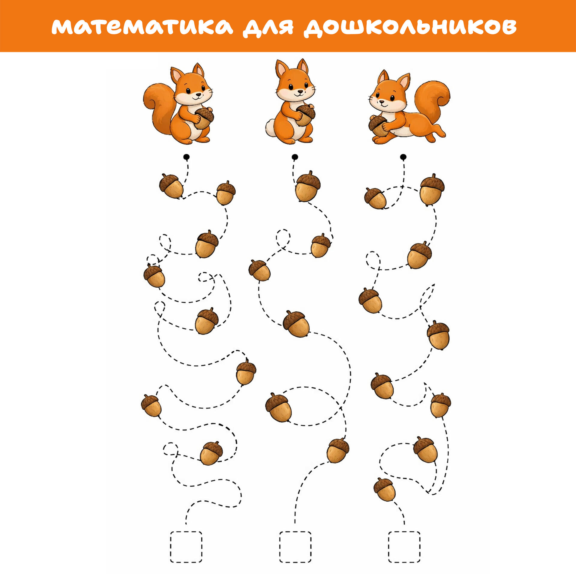 А теперь малыши, посчитайте, сколько желудей припасла каждая белочка?
