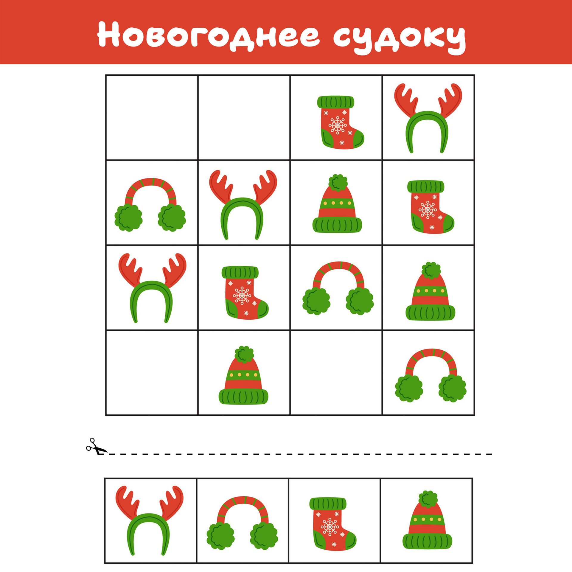 А так как на носу Новый год – давайте поиграем в новогоднее судоку!