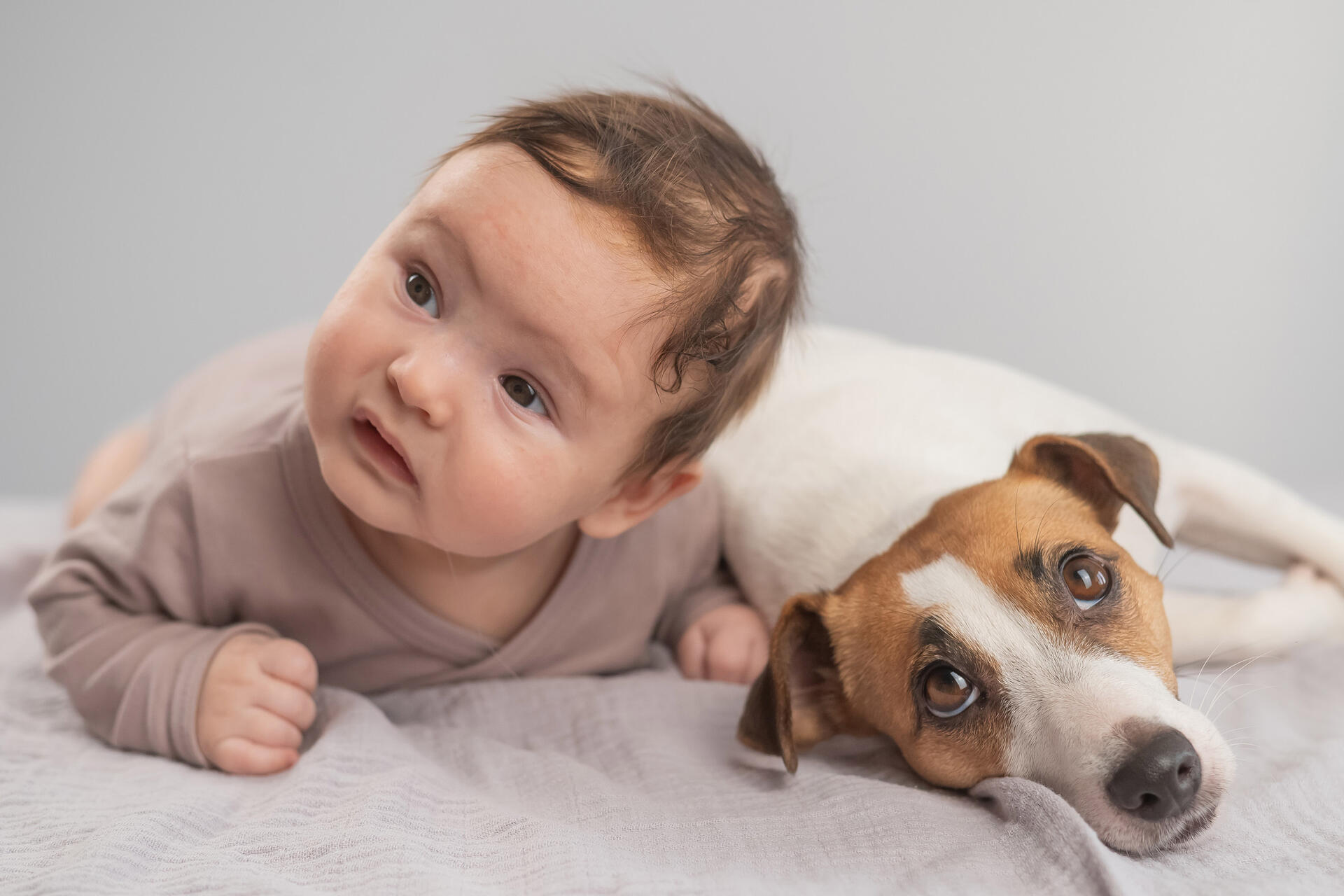 Заранее принесите домой детское одеяло или пеленку из роддома, чтобы питомец мог его понюхать — это поможет ему привыкнуть к запаху малыша заранее.