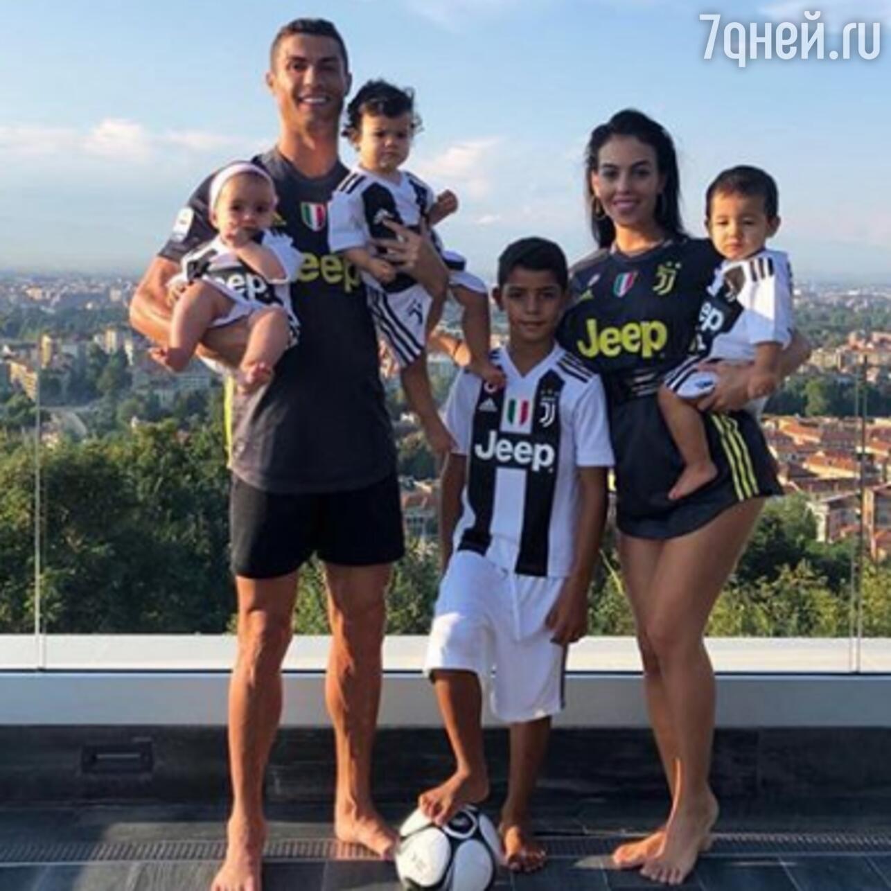 Криштиану Роналду поделился плодами новой фотосессии, на которой запечатлел своих детей и невесту — Джорджину Родригес. Для этого кадра футболист облачил все свое семейство, включая 8-летнего сына Криштиану-младшего, близнецов Еву и Маттео, а также 8-месячную дочку Алану, в футбольную форму команды Juventus.