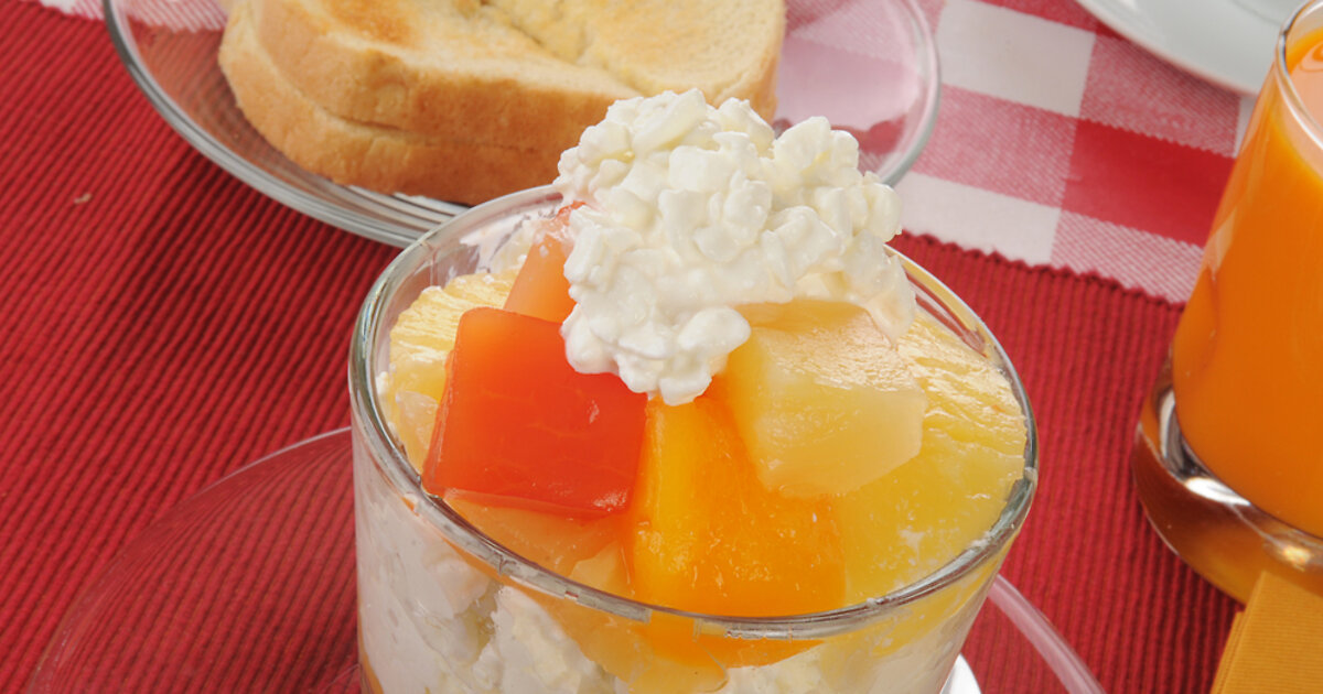- Переложите получившуюся творожно-сметанную массу в бокал.