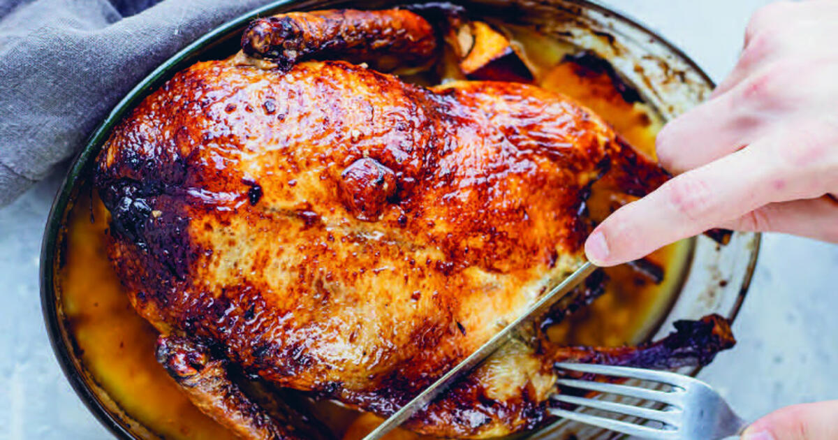 2. Смешать коньяк с соком 1 мандарина и наколоть этой смесью утку с помощью шприца, уделив особое внимание грудке.