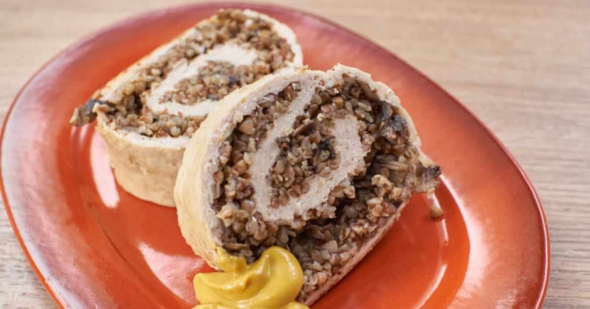 11. Сервировка: Мясной рулет с грибами и гречкой можно подать с хреном или горчицей.
