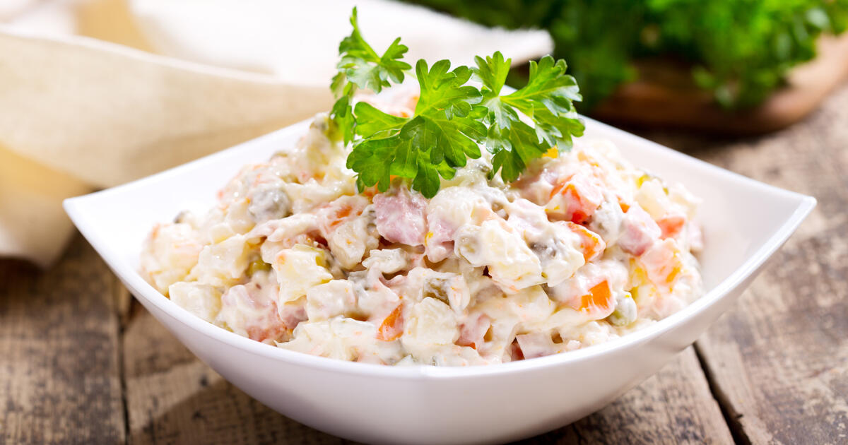 Ни один новогодний стол не обходится без самого новогоднего салата — оливье. Чтобы его сделать более изысканным, вместо привычной докторской колбасы можно добавить отварной говяжий язык. Он придаст блюду особую текстуру и более насыщенный вкус.
