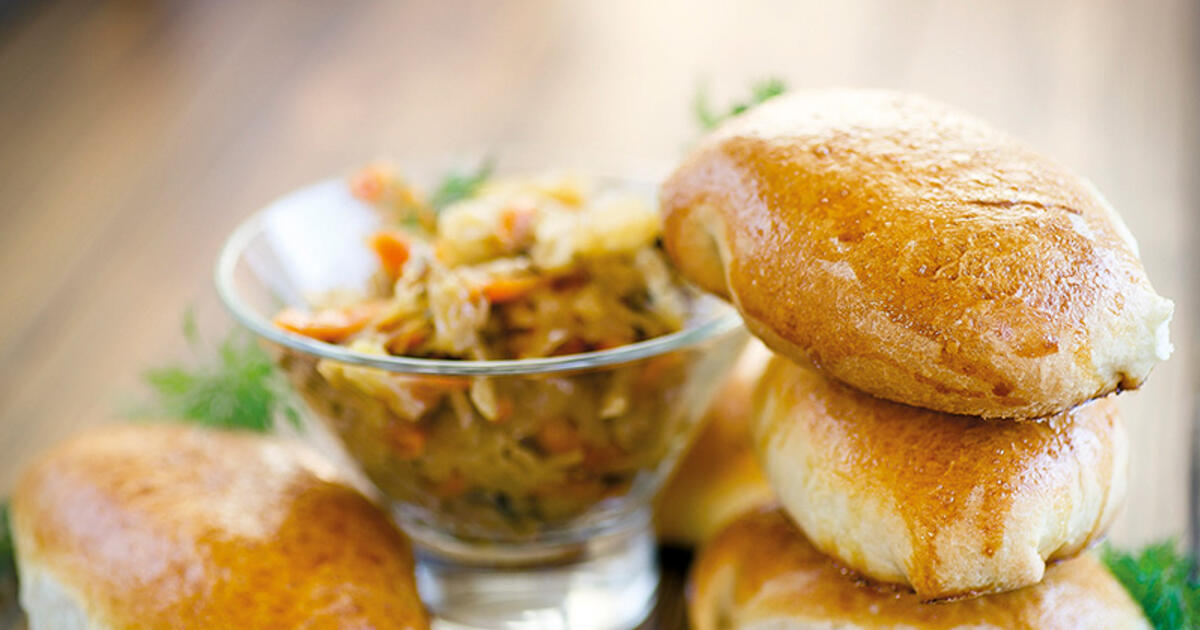 Смазать желтком и выпекать в духовке, разогретой до 200°C, 20 минут.