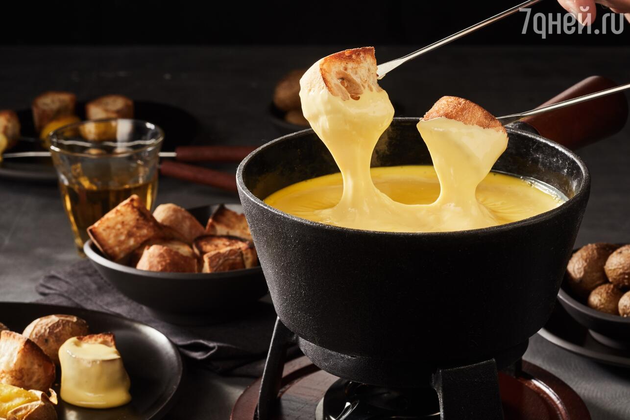 В фондюшнице можно растопить не только сыр, но и шоколад, в который обмакивают фрукты, печенье, зефир. К девайсу обычно прилагаются длинные вилки.
