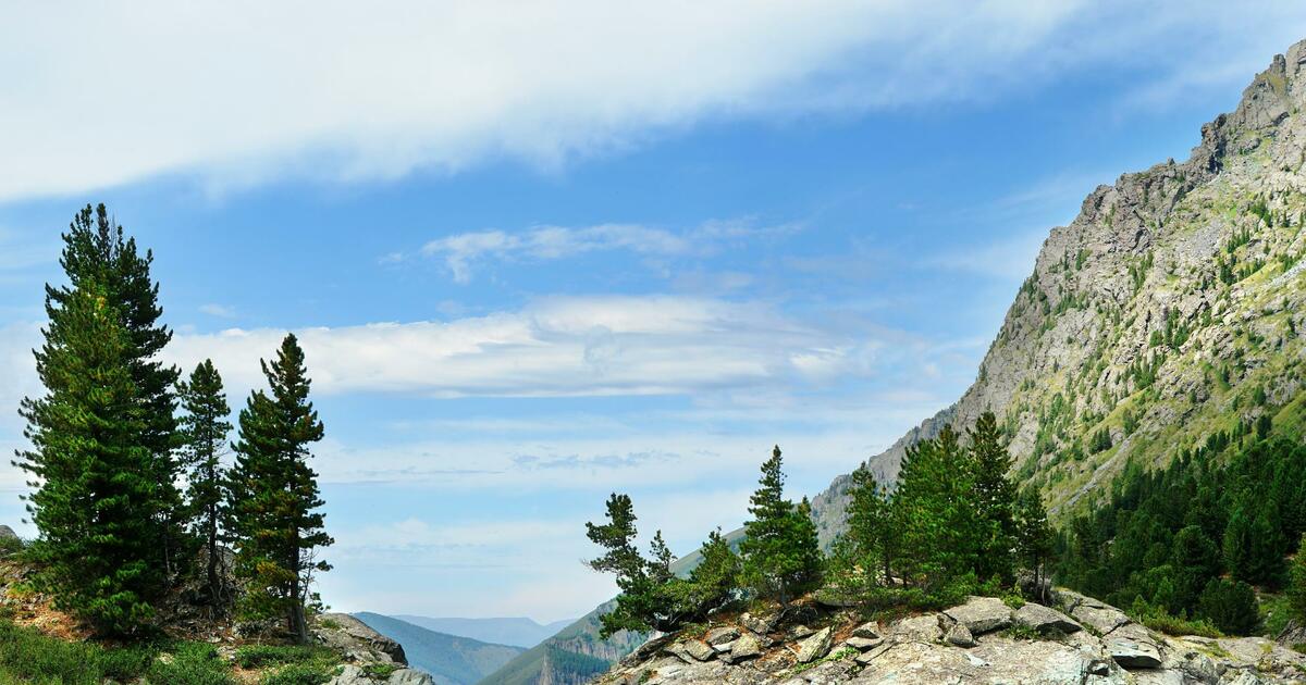 На юге «море тайги» сменяют степи, переходящие в горную цепь, которую называют сибирскими Альпами или российским Тибетом. Алтайские горы протянулись более чем на 2 000 км. Сверкающие на солнце заснеженные вершины создают великолепные пейзажи на контрасте с бирюзовыми озерами, цветущими лугами и чистейшими горными речками.