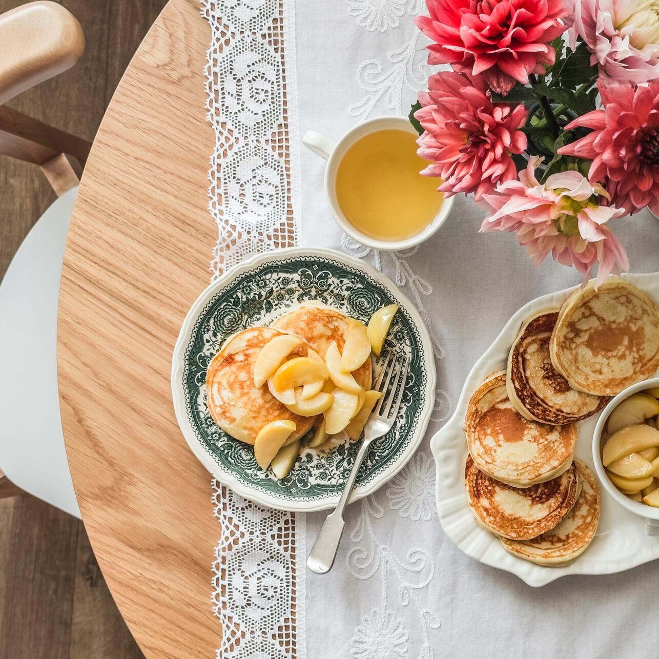 Масленица — праздник солнечный, поэтому и стол должен отражать это настроение. Основа палитры — теплые оттенки: терракотовый, горчичный, рыжий или кремовый. Именно они создают ощущение тепла и уюта, которого так не хватает в конце февраля. Скатерть можно выбрать нейтральную — льняную или хлопковую в натуральном цвете, — а яркие акценты расставить через салфетки, посуду и декор. Красный тоже уместен, но в меру: как акцентный цвет, а не основной.