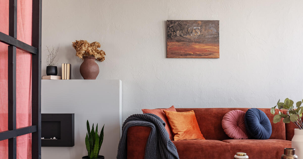 После долгих лет пастельных и припыленных оттенков в интерьер приходит настоящая насыщенность: в 2026 году популярны яркие и сложные оттенки – от шафрана и баклажана до свежего василькового и глухого лилового. Они работают в дуэте с темным деревом, камнем, терракотой и латунью.