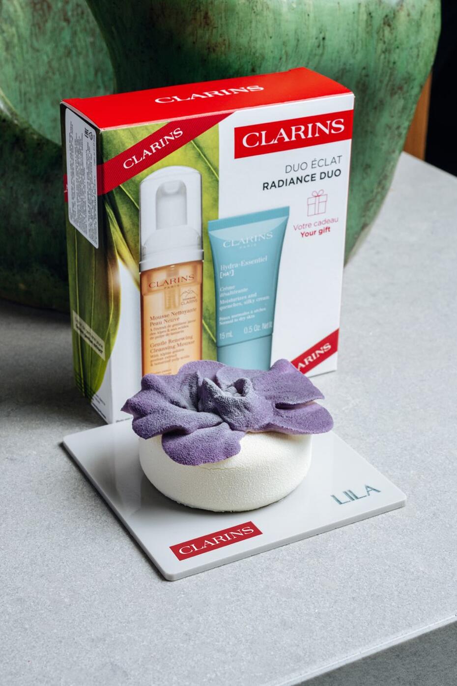 Центральное место в коллекции занимает десерт «Голубая орхидея», созданный специально в партнерстве с Clarins. Вдохновением послужило эфирное масло одноименного цветка, используемое в уходовых средствах бренда. С 3 марта 2026 года при заказе этого десерта гости получат набор из двух средств Clarins: очищающий мусс Mousse Nettoyante Peau Neuve и дневной крем для нормальной и сухой кожи.