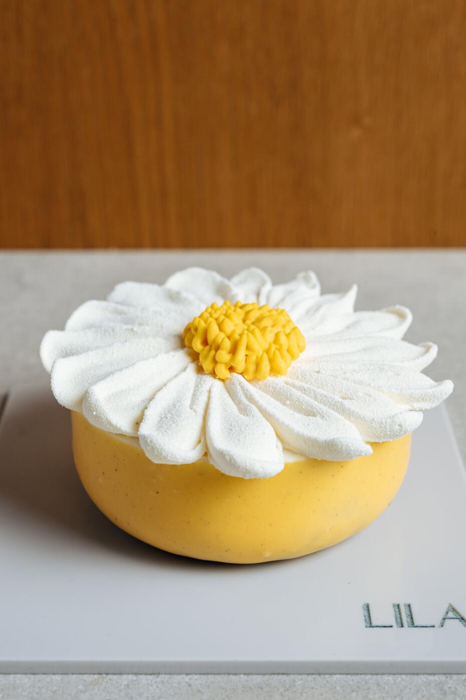 — «Ромашка»: ромашковый мусс, клубнично-земляничная начинка и ганаш маскарпоне;