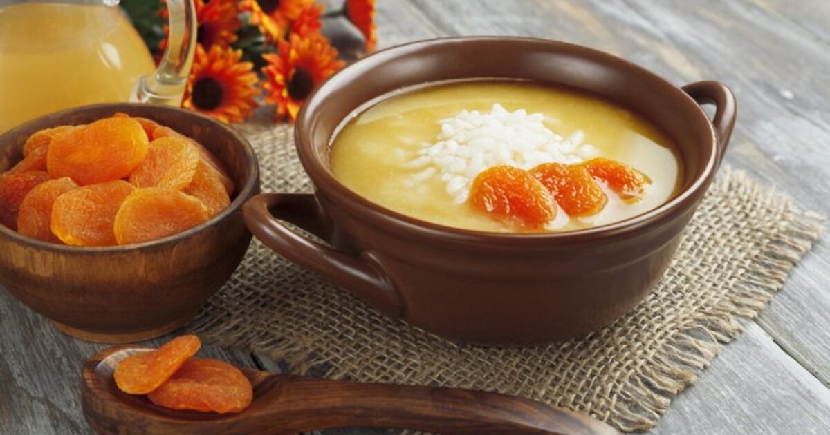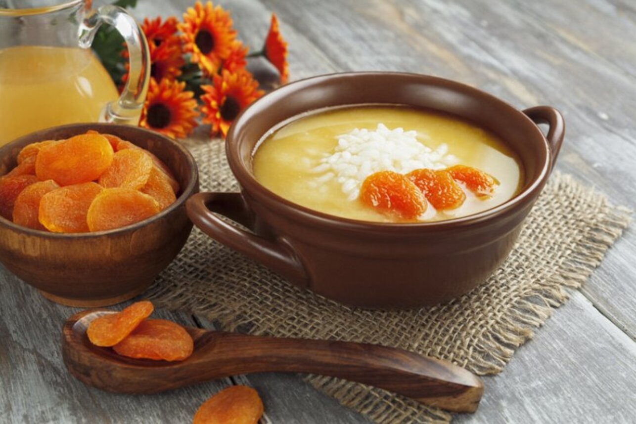 400 г моркови и 250 г молодого картофеля очистить от кожицы, нарезать мелкими кубиками и слегка обжарить в кастрюле в 3 ст. л. растительного масла. Затем добавить 2 ст. л. колечек зеленого лука, перчик чили и 3 минуты обжаривать овощи, помешивая. Ингредиенты залить 700 мл воды с добавлением 2 ст. л. сока лимона, перемешать, добавить 1 кубик овощного бульона, 300 г кураги и томить 20 минут. Содержимое перелить в блендер, измельчить, добавить 1 ч. л. порошка карри и щепотку молотой корицы, разлить суп по тарелкам и сдобрить каждую порцию 2 ст. л. взбитой сметаны.