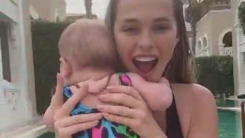 Анна исполнила танец в бассейне под трендовую музыку, держа в руках пятимесячную малышку. Средняя дочь с удовольствием поддержала мать в записи видео.