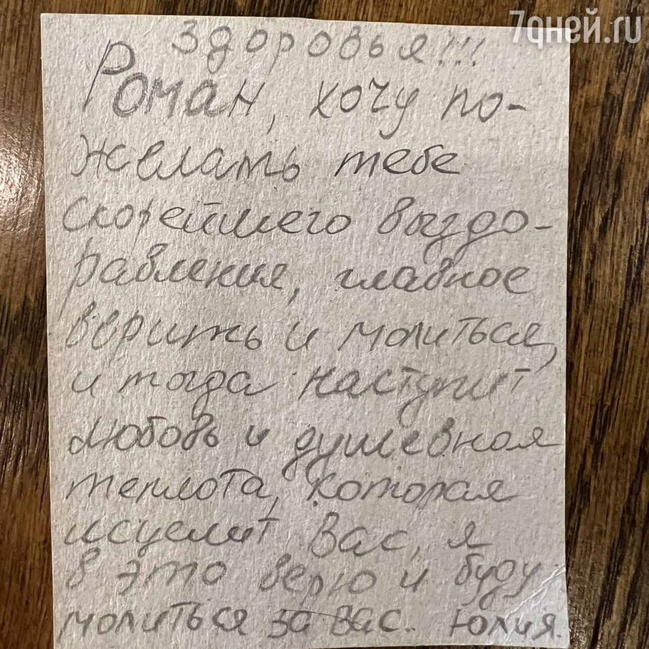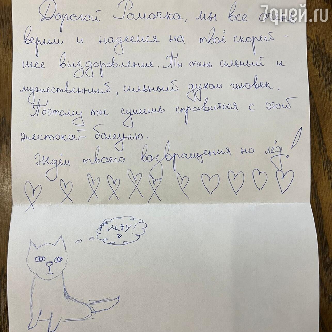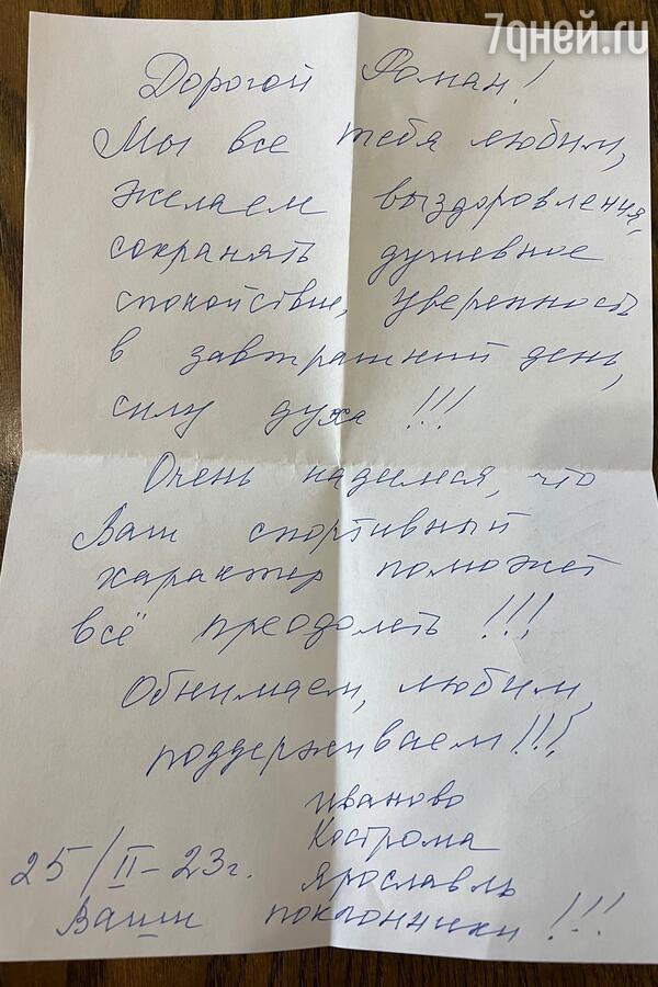 Организаторы шоу уже собрали несколько десятков теплых, трогательных писем для Костомарова. Одно послание из писем написано на настоящем врачебном бланке с печатью, где Костомарову в качестве рецепта прописали здоровье. Также для фигуриста передавали детские рисунки, небольшие образки и иконы.