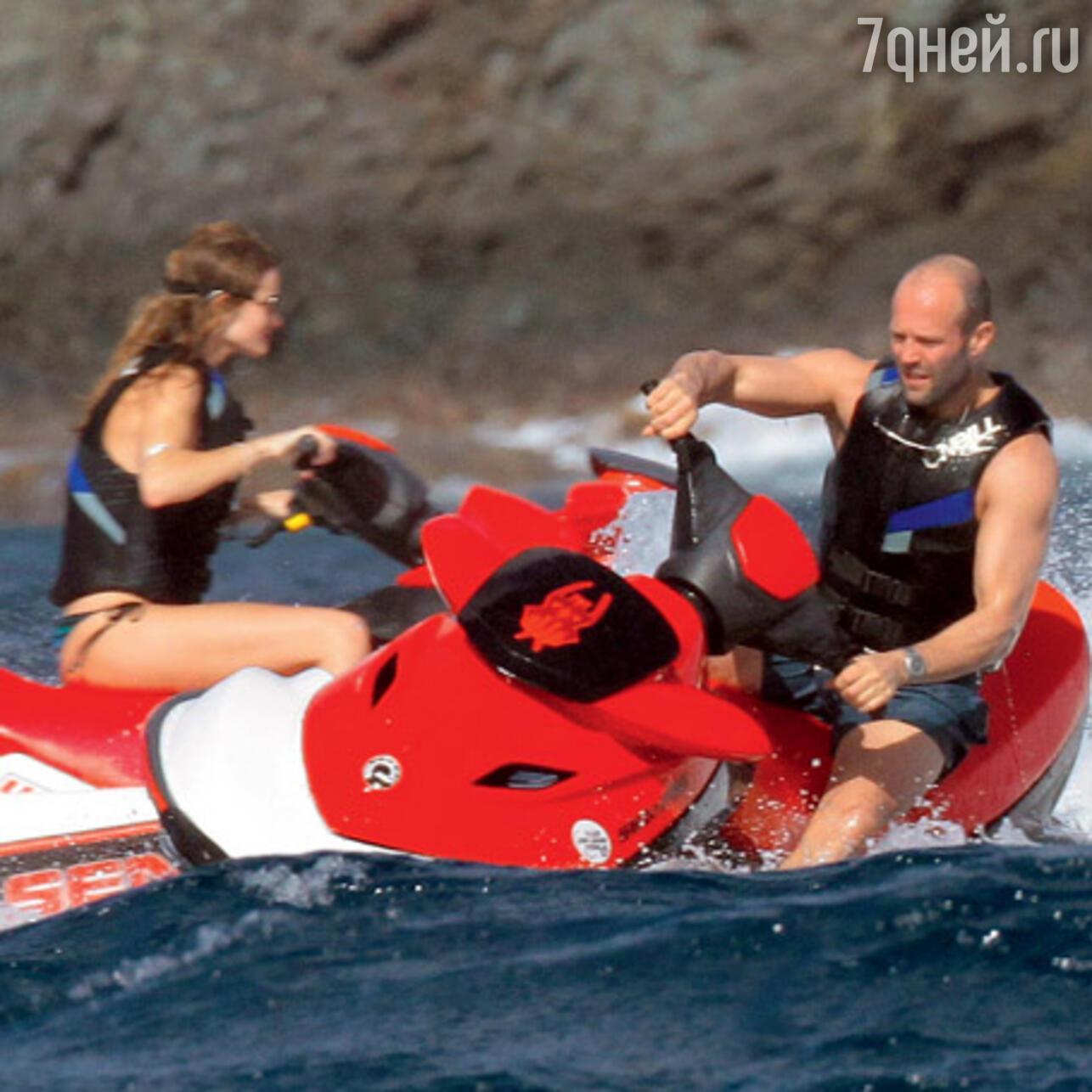 Брутальный актер специализируется на ролях крутых парней, которым любой подвиг по плечу, но в обычной жизни он не так уверен в себе, как его экранные герои. Достаточно сказать, что Стэтэм несколько лет залечивал сердечную рану после разрыва с моделью Келли Брук. Они расстались еще в 2004 году после семилетнего романа, но только прошлой зимой 38-летний Джейсон окончательно пришел в себя. Он снова стал обращать внимание на женщин, а вскоре начал ухаживать за 23-летней моделью и актрисой Рози Хантингтон-Уайтли. Несмотря на то что девушка уже переехала в дом Джейсона в Лос-Анджелесе, актер не спешит официально объявлять ее своей невестой, хотя по миру гуляют слухи об их помолвке и даже есть снимок кольца с бриллиантом, якобы подаренного по этому случаю. Начало года влюбленные провели на Карибах. Хантингтон-Уайтли и Стэтэм арендовали яхту, на которой курсировали от одного острова к другому, нигде надолго не задерживаясь. Влюбленные купались, загорали, а также устраивали гонки на водных мотоциклах.