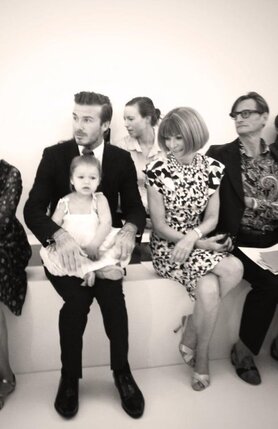 На прошедшем в воскресение показе 2-летняя Харпер сидела на коленях у папы в милом белом платье от Chloe. Оказавшаяся рядом редактор американского издания журнала Vogue Анна Винтур, похоже, была очарована девочкой, часто поворачивалась к ней и улыбалась. Стоит отметить, что Харпер стала настоящей звездой шоу — по большей части к ней, а не к моделям были обращены взоры всех присутствовавших, среди которых была и российская светская львица Мирослава Дума.