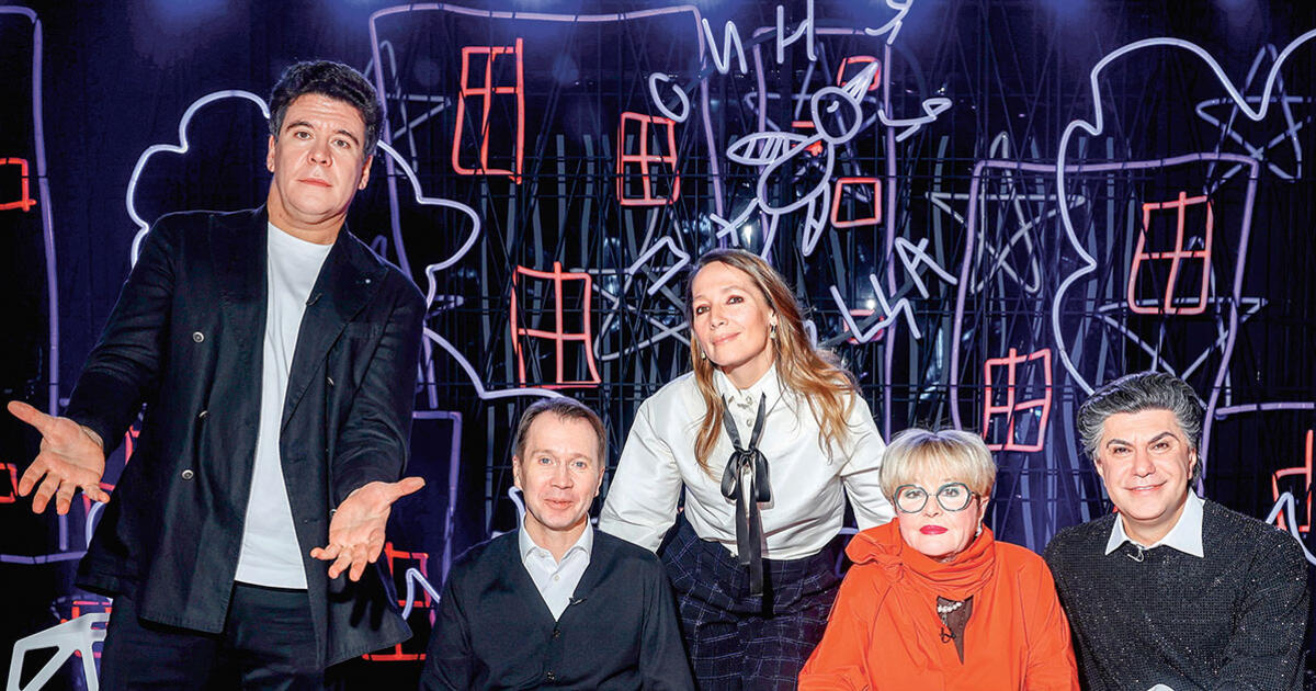 Ведущая Дарья Златопольская (в центре) и члены жюри — Денис Мацуев, Евгений Миронов, Марина Неелова и Николай Цискаридзе