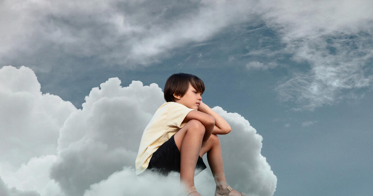 Мальчик сидит на облаке