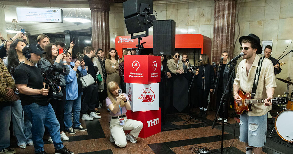 Сегодня, 17 мая, станция московского метро «Курская» превратилась в настоящую концертную площадку. Прямо посреди рабочего дня для пассажиров выступили участники шоу «Новая Фабрика звёзд» на ТНТ. Лео Канделаки, Александр Круг, Полина Быковская, Софья Полозова, Мария Гордеева и Габриэль Александров исполнили для москвичей и гостей города авторские композиции. Вокруг молодых музыкантов сразу же образовалась толпа поклонников: одни громко поддерживали своих кумиров и подпевали им, другие заинтересованно наблюдали за музыкальным перфомансом.