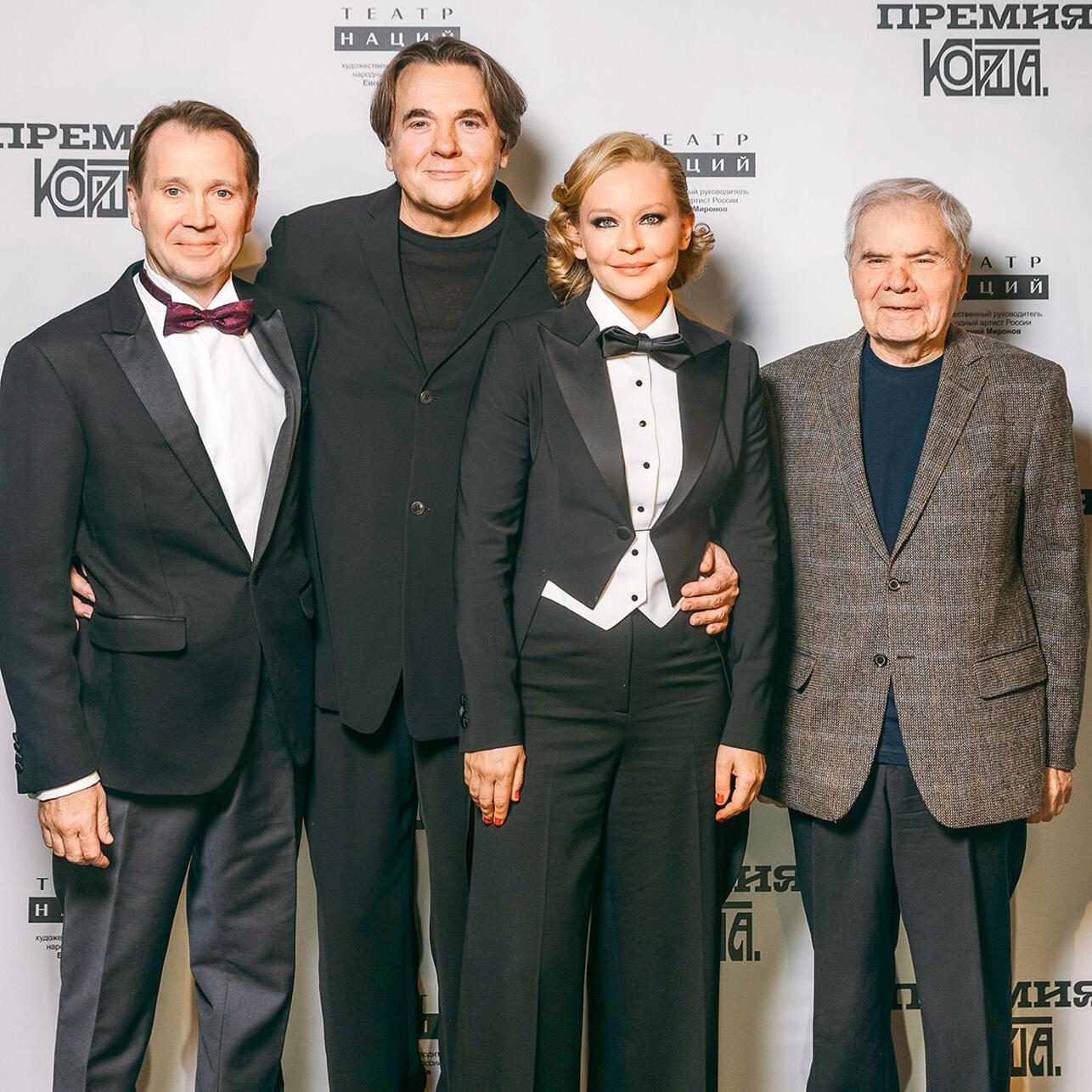 Данил Чащин, российский режиссер, победил в номинации «Прорыв», а японский режиссер Мотои Миура — «Дебют». Юлия Пересильд, которая в этот день праздновала день рождения, получила награду в номинации «Гордость». Чтобы поздравить актрису и вручить приз, на сцену вышли Константин Эрнст и Олег Кудряшов (Юлия — выпускница мастерской Олега Кудряшова в ГИТИСе. — Прим. ред.). «Друзья мои, честно скажу вам: Театр Наций не мог придумать лучшего подарка. Евгений Витальевич — мой ближайший друг, художественный руководитель и мой партнер. Я пробовала поменять профессию.