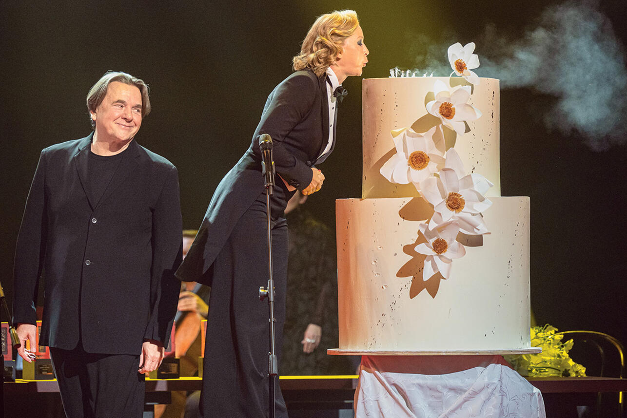 Слетала в космос, вернулась и поняла, что вот именно здесь все мое, родное. Спасибо огромное, что к своим сорока годам я не перестала любить людей и свою работу. В этом заслуга людей, которые встречаются мне на пути». Сюрпризы для именинницы на этом не закончились — после трогательной речи актрисы Евгений Миронов вынес огромный торт, Юлии даже пришлось забраться на стул, чтобы задуть свечи. В зале на протяжении вечера царила праздничная атмосфера. Актеры, режиссеры, музыканты пришли на премию, чтобы поздравить своих коллег с началом нового сезона, в котором Театр Наций представит 10 премьер, в том числе от режиссеров из Китая и ЮАР. В завершение церемонии гостей ждал еще один сюрприз — на сцену вышел Леонид Агутин и исполнил несколько песен, а именитые гости не смогли удержаться и станцевали под любимые хиты.