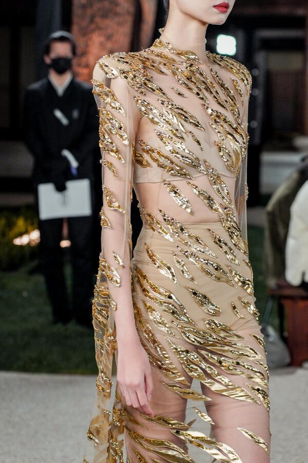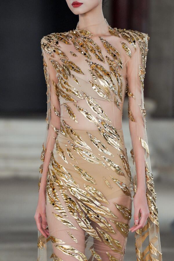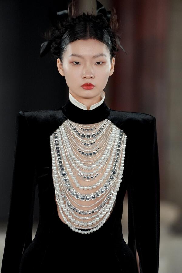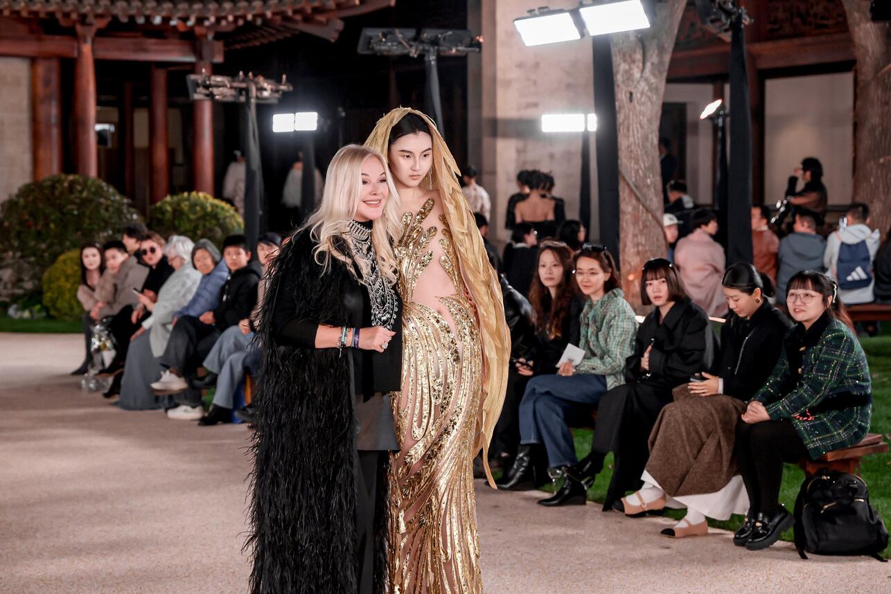 Для китайской публики Юлия Янина представила селекцию из 30 iconic-образов. В нее вошли как архивные наряды, так и новые кутюрные творения. Среди главных драгоценностей вечера — коллекция «Габриэль» сезона SS’26, которую этим годом уже показывали в Париже на Неделе высокой моды. Утонченные силуэты с контрастными белыми воротничками и вышивкой в виде колосьев рафии стали символом внутренней силы и безграничных возможностей.