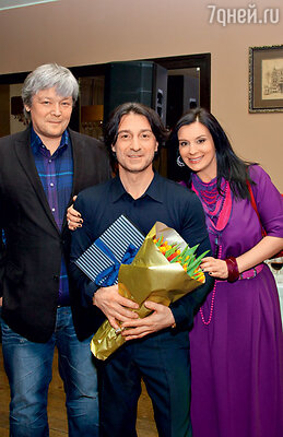 Юбиляр с Екатериной Рождественской и ее подарком — фотопортретом актера