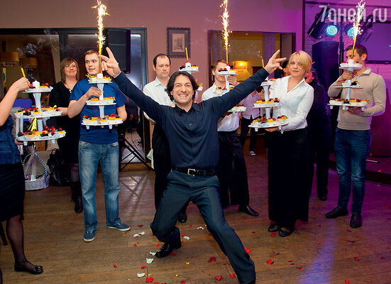 На подтанцовке в этом номере выступала звезда скетч-шоу «6 кадров» Ирина Медведева. Вместе с Абрамовой и юбиляром она изобразила настоящий любовный треугольник. «Мы познакомились с Эвклидом десять лет назад, на съемках в Белоруссии, — говорила потом Медведева. — Уже тогда он убеждал, что мне надо перебираться в Москву. А я думала: где я и где Москва?! И в том, что теперь живу именно здесь, есть заслуга и Эвклида... Существует фестиваль в Сан-Ремо, есть «Оскар», а есть день рождения Кюрдзидиса, на котором встречаются талантливые люди, объединенные любовью к Эвклиду!» На вечеринку пришел и бывший муж Медведевой певец Руслан Алехно.