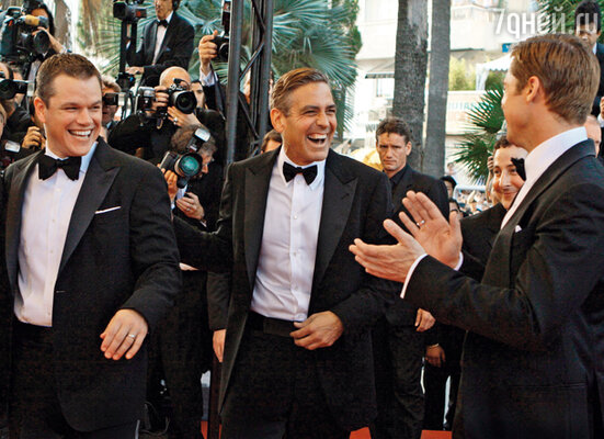 С Мэттом Дэймоном и Брэдом Питтом (справа) Клуни связывает нежная дружба
