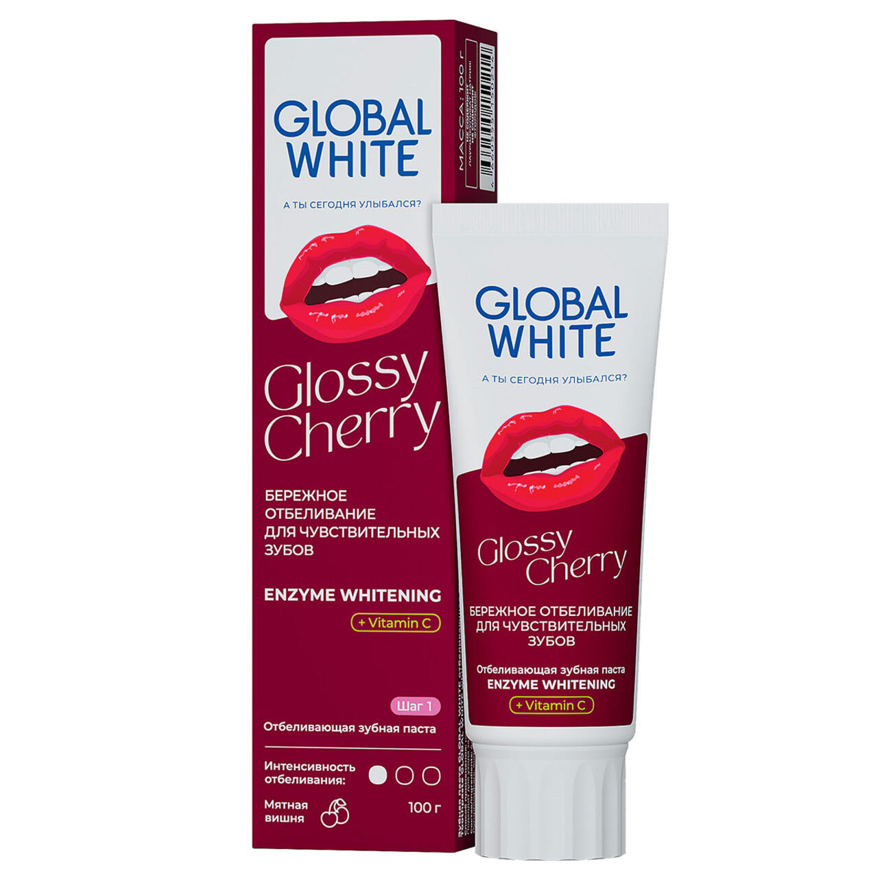 В лимитированной коллекции Glossy Cherry от GLOBAL WHITE со вкусом вишни есть все необходимое для здоровья зубов: низкоабразивная зубная паста с витамином С, отбеливающая пенка-ополаскиватель и спрей, освежающий дыхание и защищающий от кариеса.