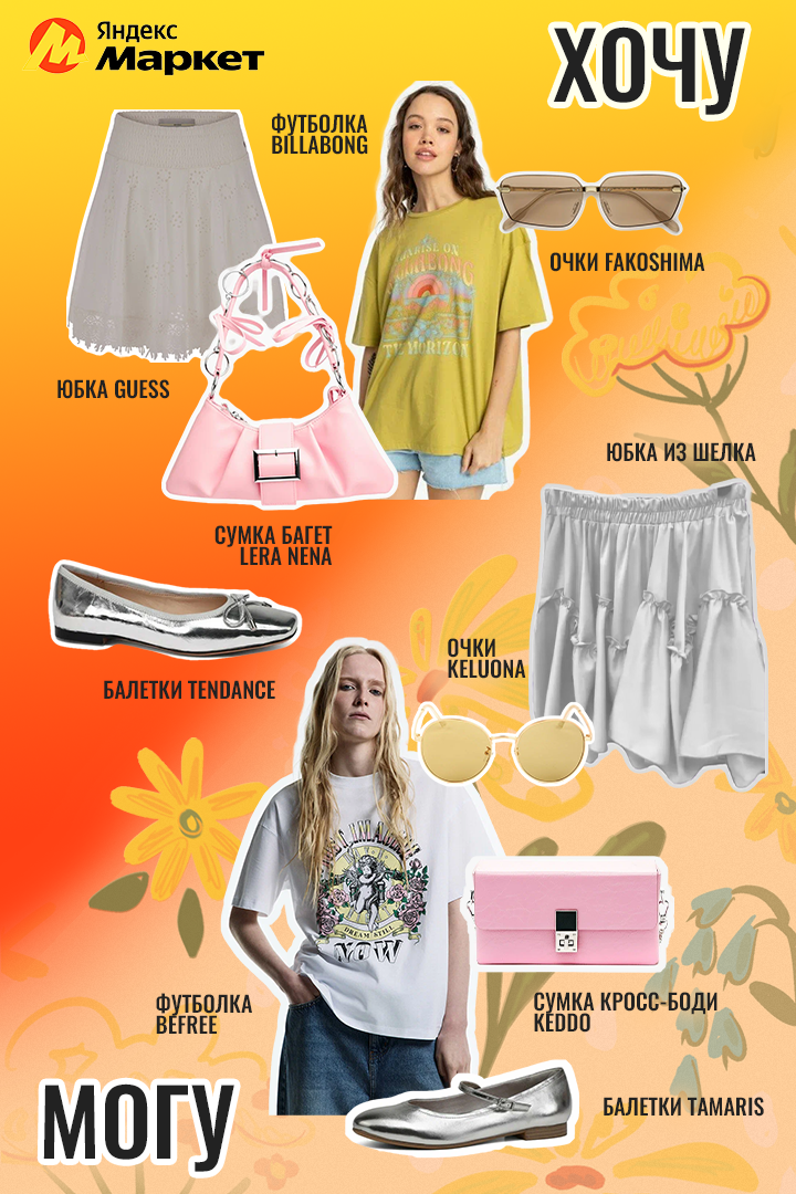 Вместе с Марией Шеди мы составили нарядный и в то же время удобный образ, который подойдёт для свидания или встречи с друзьями. Собрать модный гардероб можно с любым бюджетом, поэтому мы сделали две подборки похожих вещей в разных ценовых сегментах. Приобрести их выгоднее помогут зелёные цены со скидками — они действуют на Яндекс Маркете при оплате картой Яндекс Пэй. Зелёные цены доступны на миллионы товаров на маркетплейсе и дают дополнительную скидку до 30%.