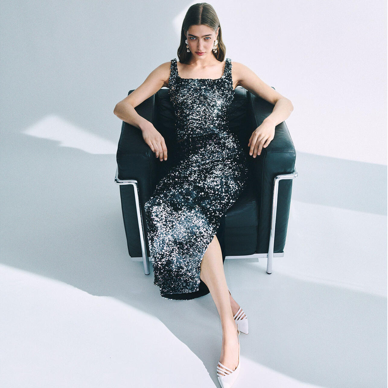 Платья-комбинации или футляры, юбки с высокими разрезами и украшенные россыпью пайеток — почему бы не привнести в жизнь немного праздника?