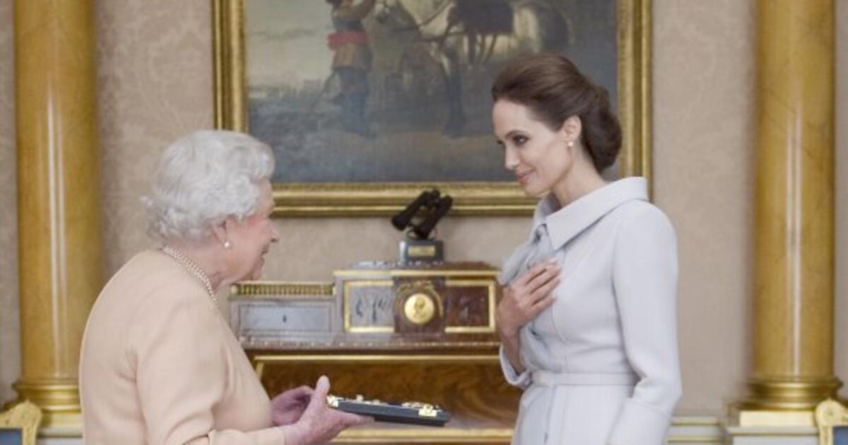 Анджелина Джоли получает Большой крест ордена святого Михаила и святого Георгия из рук Елизаветы II